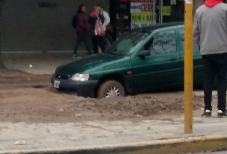 Después de la rotura de un caño y que provocó que esta mañana un auto quedara enterrado en plena Avenida Libertador y Rioja en Capital, personal de Monitores Urbanos se encuentra desviando el tránsito.