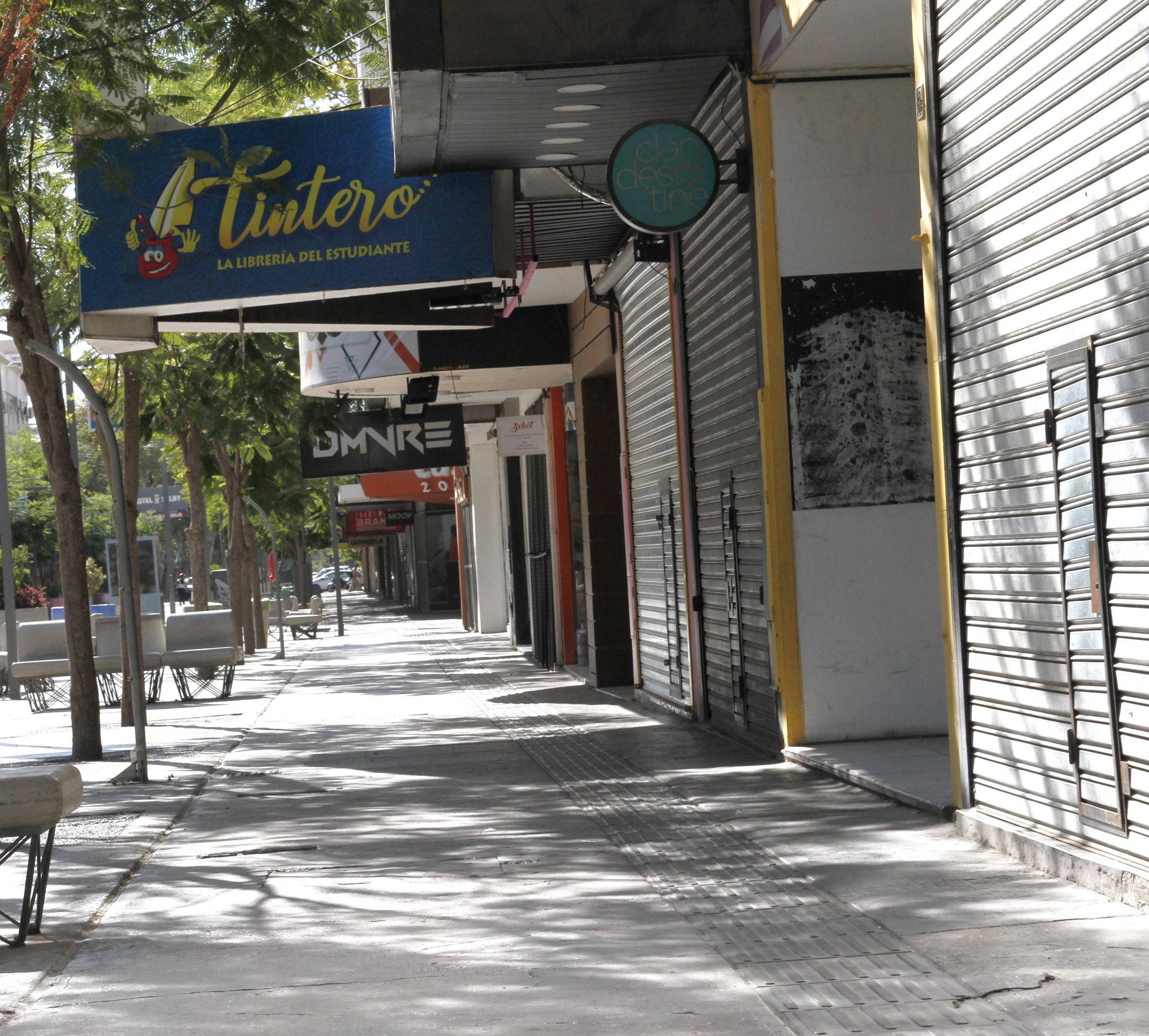 Persianas bajas. Fuera de las actividades exceptuadas, el comercio local acató la disposición oficial que dispuso la cuarentena obligatoria desde la medianoche de ayer.