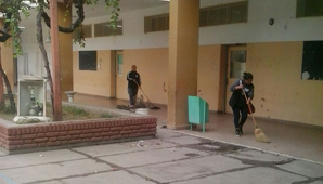 San Juan.- Durante la siesta de este miércoles, papás de alumnos de la escuela Antonio Torres, de Capital, decidieron agarrar los lampazos y escobas y entraron a limpiar las aulas, aunque los directivos les pidieron que no lo hicieran. Es que, según comentaron, hace 10 días que están con un solo portero, que no da abasto.