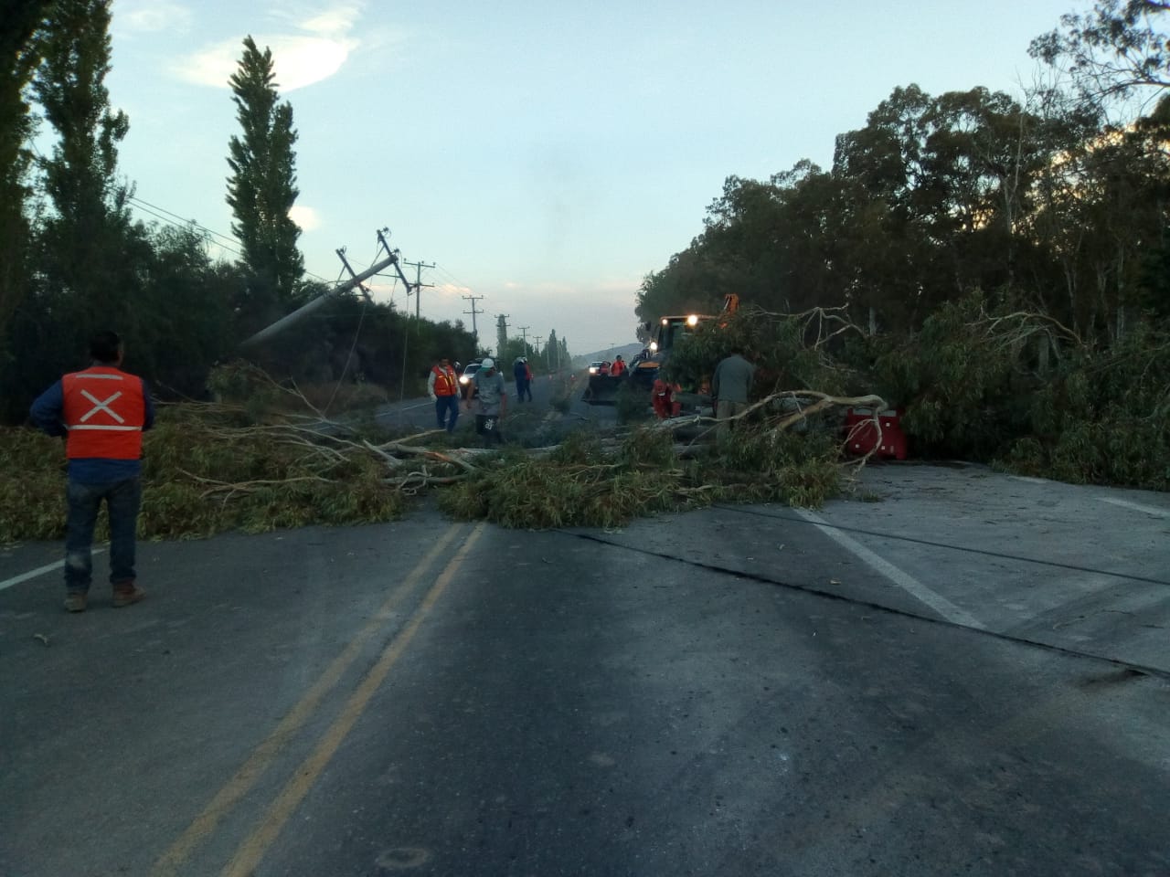En la  noche de este sábado, las autoridades de la Dirección Nacional de Vialidad informaron que el tránsito estaba interrumpido sobre Ruta Nacional 40 Sur, entre el acceso a Carpintería y la Calle 18. El motivo: la caída de postes de media tensión sobre la calzada, como resultado de un fuerte viento Zonda.