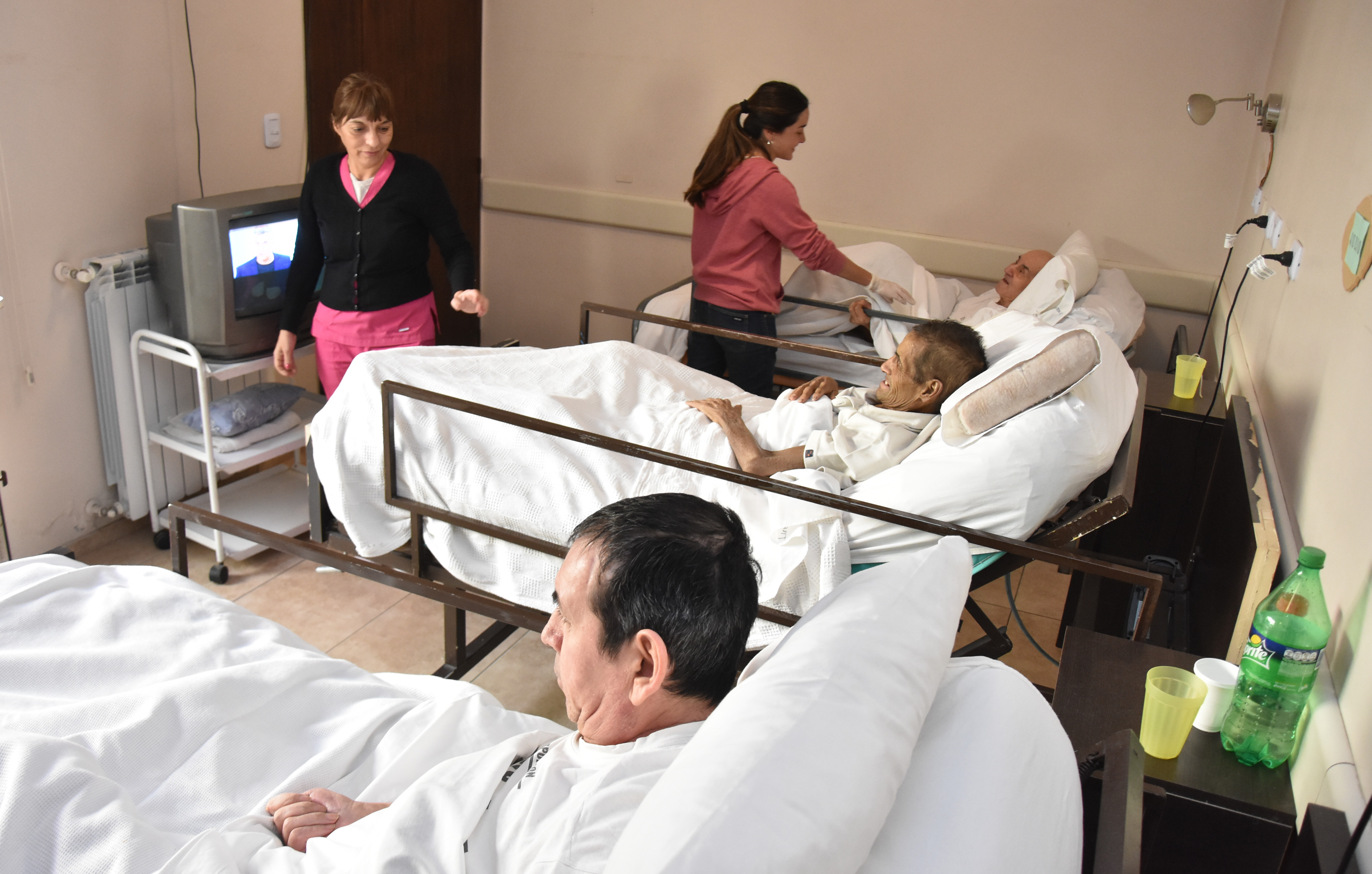 Esta casa, pese a ser espaciosa, sólo tiene dos habitaciones con 5 camas en total para alojar a los pacientes terminales. Es que el resto del edificio se destinó para que funcionen los diferentes servicios como la cocina, lavandería, enfermería, comedor y capilla, entre otros. Desde hace dos años quedó chica para la demanda. Mirta Cuadros, su directora, dijo que son escasos los días en que hay una cama desocupada por lo que hay gente en lista de espera. "Nosotros hicimos convenios con el Hospital Rawson y el Marcial Quiroga desde donde nos derivan a los pacientes terminales que transitan la última etapa de su enfermedad y que no tienen quien los cuide. Pero ahora también los derivan desde hospitales de la periferia que solicitan nuestro servicio. Y no nos podemos negar a recibirlos. Hay mucha gente en estas condiciones que nos necesita", dijo la mujer.