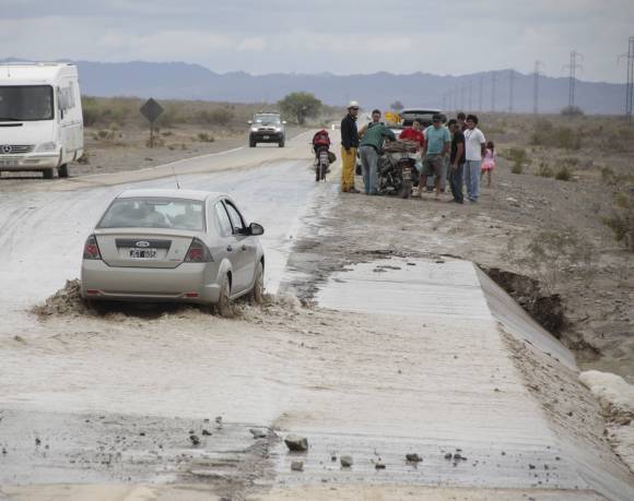 Los autos maniobrando para encontrar el espacio que menos agua y piedras tuviera, y de esta manera sortear el obstáculo sin dañar el auto ni quedarse parado en él. Ésta fue sólo una postal de las peripecias que debieron realizar los conductores que intentaban llegar hasta Jáchal y que se encontraron con que los badenes de la Ruta 40 estaban llenos de agua y de material de arrastre que depositó la creciente. Es que la persistente lluvia que se precipitó en la madrugada de ayer trajo aparejado que la ruta hacia Jáchal se transformara en una potencial trampa para los conductores.