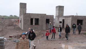 San Juan, 14 de febrero.- Esta tarde, unas 60 familias de Santa Lucia decidieron usurpar unas viviendas de un barrio en construcción, ubicado sobre calle 25 de Mayo metros antes de Balcarce.
