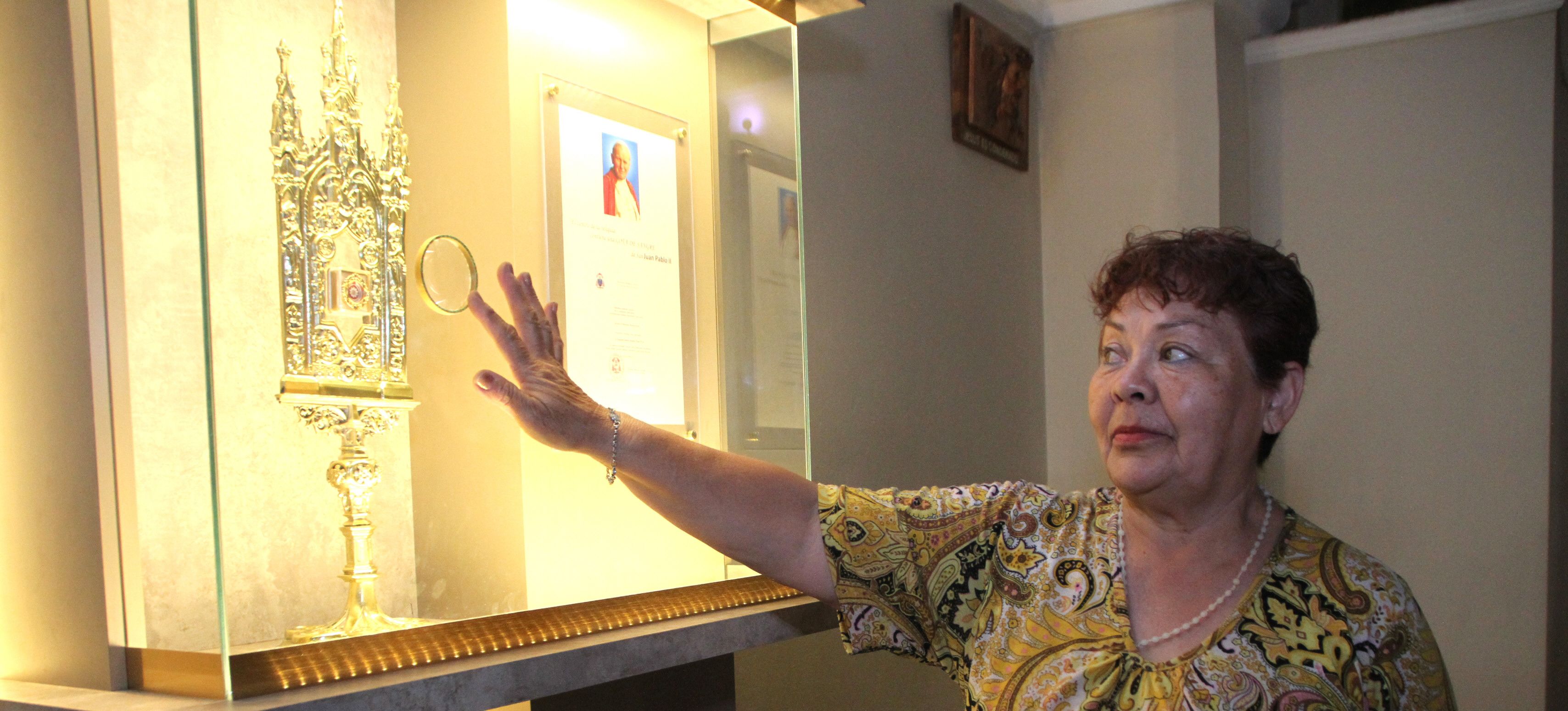 "Siempre que tengo un momento libre vengo a descansar en silencio en la parroquia y a pedirle a la reliquia del Papa que nos dé paz, que no haya más asesinatos ni drogas".
