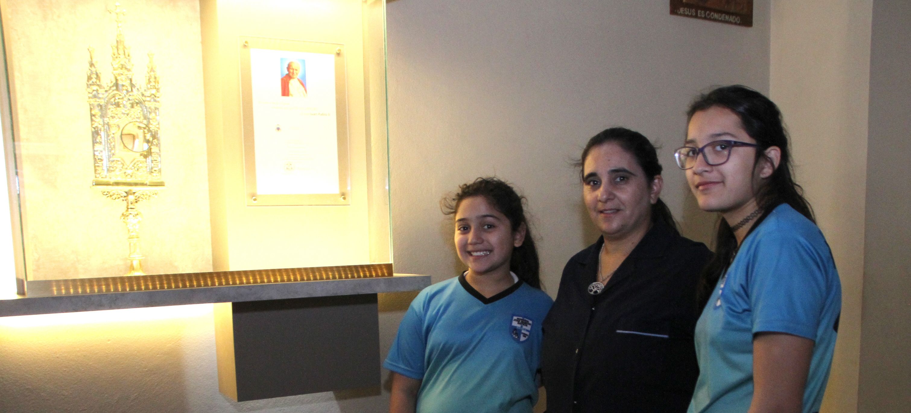 "Todos los días visitamos la reliquia nueva del santo con mis alumnos del Colegio Parroquial Juan Pablo II. Lo hacemos para pedirle que bendiga a toda la clase".