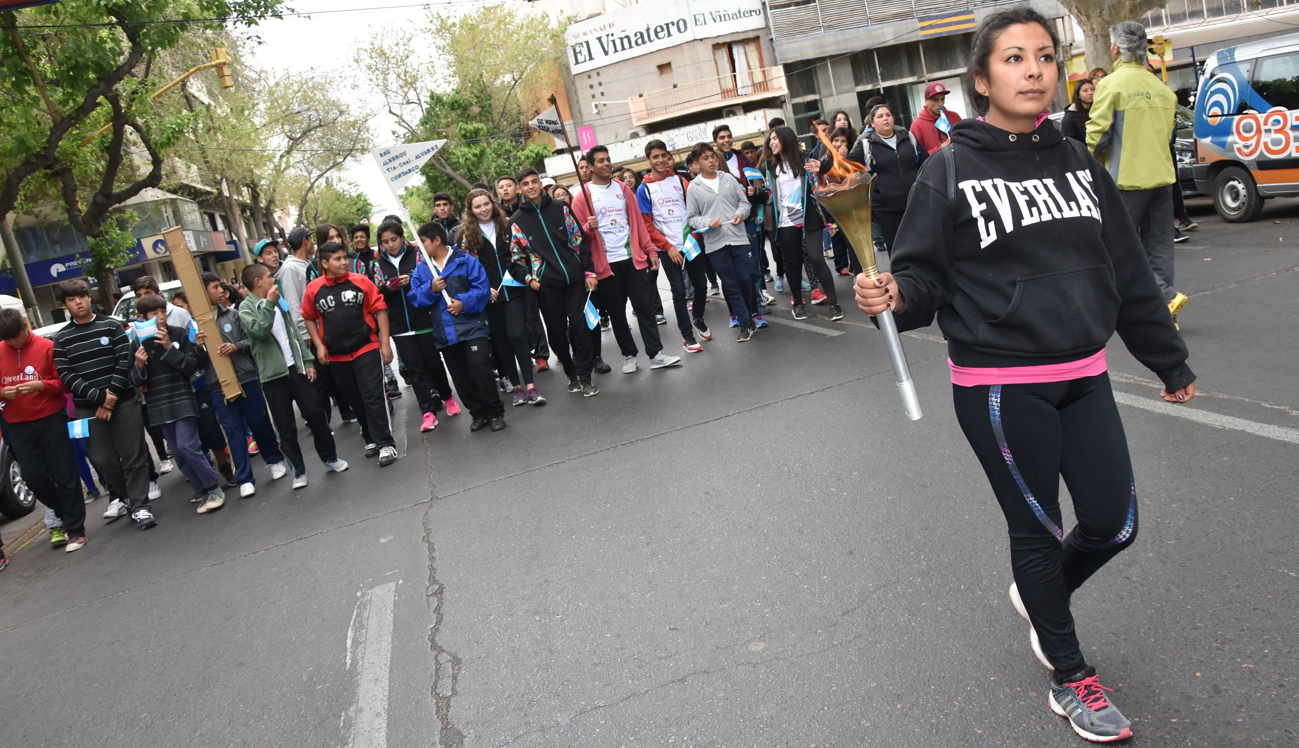 En las ediciones anteriores, quienes portaron la llama siempre fueron alumnos de escuelas cercanas a la ciudad. Es por eso que la apertura de ayer tuvo un condimento especial. Además, los alumnos que llegaron desde Jáchal fueron los que forman parte de la promoción centenaria de la Normal Fray Justo Santa María de Oro.