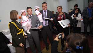 San Juan, 17 de junio.- Regalos, muchos regalos, eso fue lo que recibieron los nuevos 8 ahijados que la Presidente de la Nación tiene en San Juan donde por primera vez en la historia, mellizas integran la lista de beneficiarias.