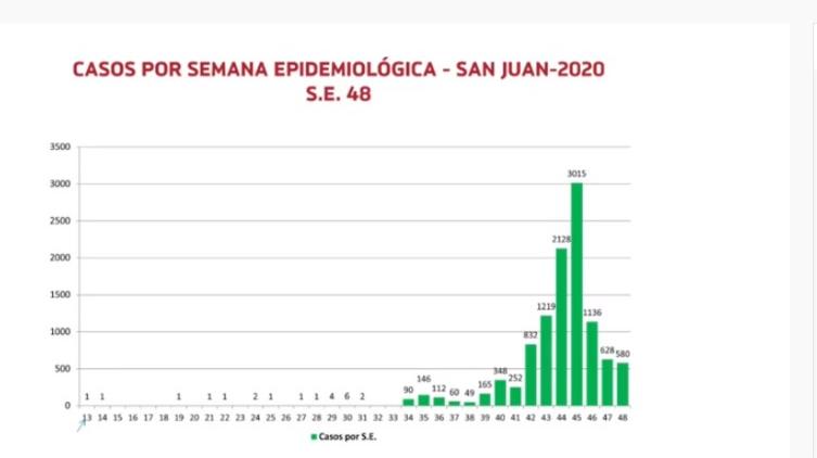 De acuerdo a los datos estadísticos aportados por la funcionaria, tras la confirmación de la circulación viral en la provincia aumentó exponencialmente la asistencia de los sanjuaninos a los centros de testeos. De esta manera, en la semana 45 (se trata de semanas epidemiológicas y que se corresponde con los últimos días de octubre y primeros de noviembre) se llegó a una cifra récord de casos positivos: 3.015.