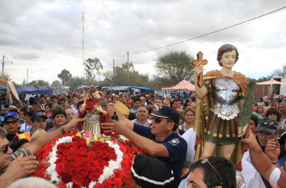Durante la peregrinación que convocó a más de 15.000 personas en Bermejo, ayer la imagen de San Expedito se rompió y tuvo que ser cambiada por otra que estaba adentro de la capilla caucetera.