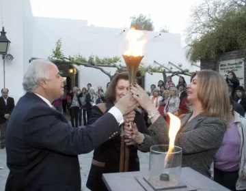 Todo comenzó en el solar del Museo Casa Natal de Sarmiento donde, después de las palabras alusivas y el canto de los himnos Nacional y a Sarmiento, las autoridades del Gobierno y del Museo encendieron la antorcha.