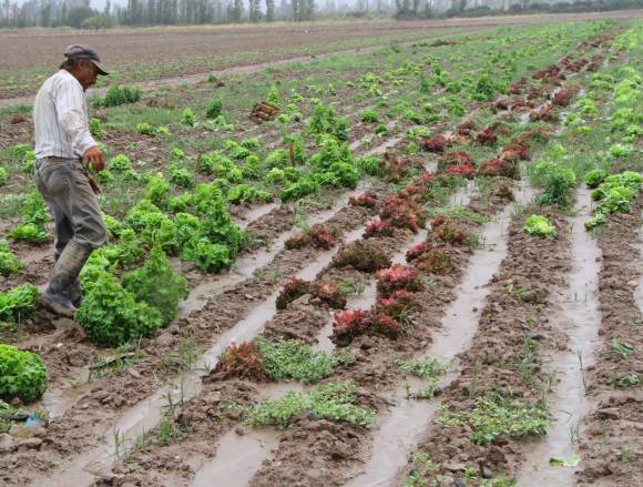 Debido a las intensas lluvias de los últimos días que provocaron una baja en la cosecha, la semana arrancó ayer con aumentos del 40 % en los precios de tomates, papas y acelgas, y un pobre ingreso de productos a los mercados concentradores locales, según se informó ayer desde la Sociedad de Chacareros de San Juan. Su titular, Juan Carlos Giménez; dijo que la comercialización en las ferias ayer fue atendida por ‘’algunos pocos chacareros que han cosechado hasta donde han podido ingresar a las chacras caminando, porque es imposible hacerlo en camioneta o camión’’. Agregó que al Mercado Concentrador de Rawson ‘’ingresó menos de la mitad de volumen de verdura de lo habitual’’ y que ‘’a menor carga (de verdura), hay menor oferta y suben los precios’’. El cajón de 20 kilos de tomates redondos, que el sábado pasado ya había subido a 70 u 80 pesos (antes costaba 50 pesos), ayer se comercializó a 140 pesos en el mercado, es decir el doble. Lo bueno es que no se trasladó toda la suba al público, sino un 40% y así el kilo en verdulerías se vendió a 14 pesos, contra los 10 pesos del sábado pasado. Las papas, que ingresan a San Juan provenientes de Mendoza y de Villa Dolores (Córdoba); también fueron escasas por el exceso de lluvia en esas provincias y también subieron: la bolsa de 25 a 28 kilos se comercializó ayer a 140 pesos, contra los 100 pesos del sábado pasado (40% más). Entre las hortalizas de hoja (lechuga, espinaca, acelga, apio) que son las más sensibles a este tipo de fenómenos climáticos, la que había aumentado ayer es la acelga, que pasó de 5 a 7 pesos el atado. ‘’Subió porque cuando llueve no se consigue gente para hacer los ataditos en el campo’’, dijo Giménez. En cambio la lechuga y zapallito continuaron a 80 y 100 pesos la jaula, y a 70 u 80 pesos el cajón, respectivamente. Gimenez aseguró que ‘’si las condiciones del clima siguen buenas como hoy, mañana (por hoy) comenzará a normalizarse el ingreso y los precios bajarán. Menos el tomate, que seguirá caro, porque es un producto que ha resultado muy golpeado por el clima, y este año hay poca producción.