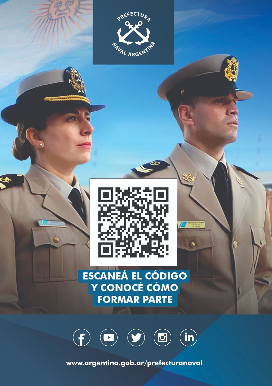 Cabe destacar que podrán ingresar a la Prefectura Naval Argentina hombres y mujeres de 17 a 22 años, que quieran desarrollar su carrera profesional como oficiales del equipo de la Autoridad Marítima argentina, pudiendo acceder a un título universitario, luego de una pasantía en el campo de estudio y accediendo a un estímulo económico desde el momento en que ingresan a los Institutos de Formación.