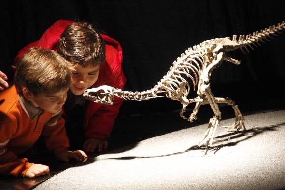 Al seguir el camino, los dientes terminados en punta de las bocas gigantes dan más escalofríos que antes. Es que están entre telones negros, que dan un ambiente impactante a la muestra y permiten que las luces artificiales tengan más fuerza sobre las reproducciones de pieles escamosas o los grandes esqueletos.