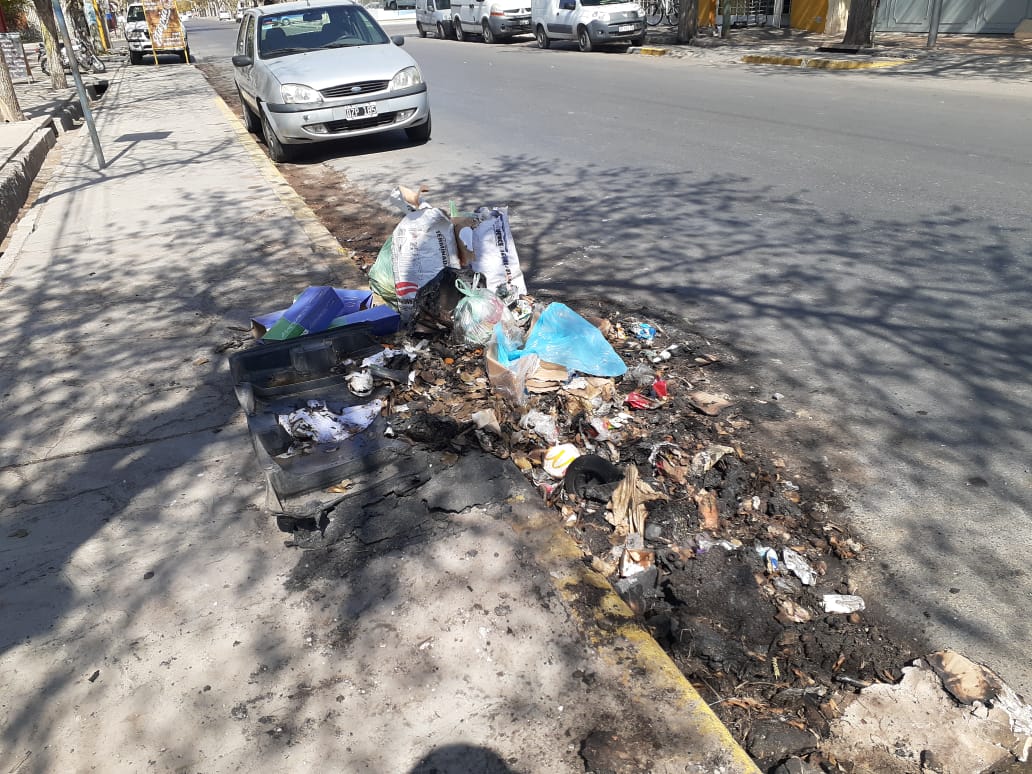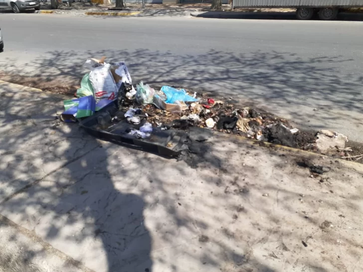 Producto de las llamas, el contenedor se redujo a cenizas y toda la basura quedó sobre la calle.