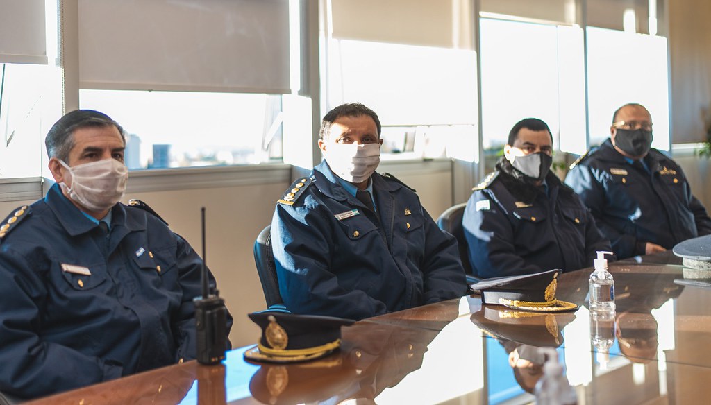 Tras conocerse los ascensos en la Policía de San Juan, el secretario de Estado de Seguridad y Orden Público, Carlos Munisaga, recibió a los nuevos integrantes de la Plana Mayor, junto al jefe de la fuerza, Crio. Luis Martínez, el subsecretario de Estado de Seguridad y Orden Público, comisario Abel Hernández; el subjefe de Policía, comisario general Carlos Castillo,