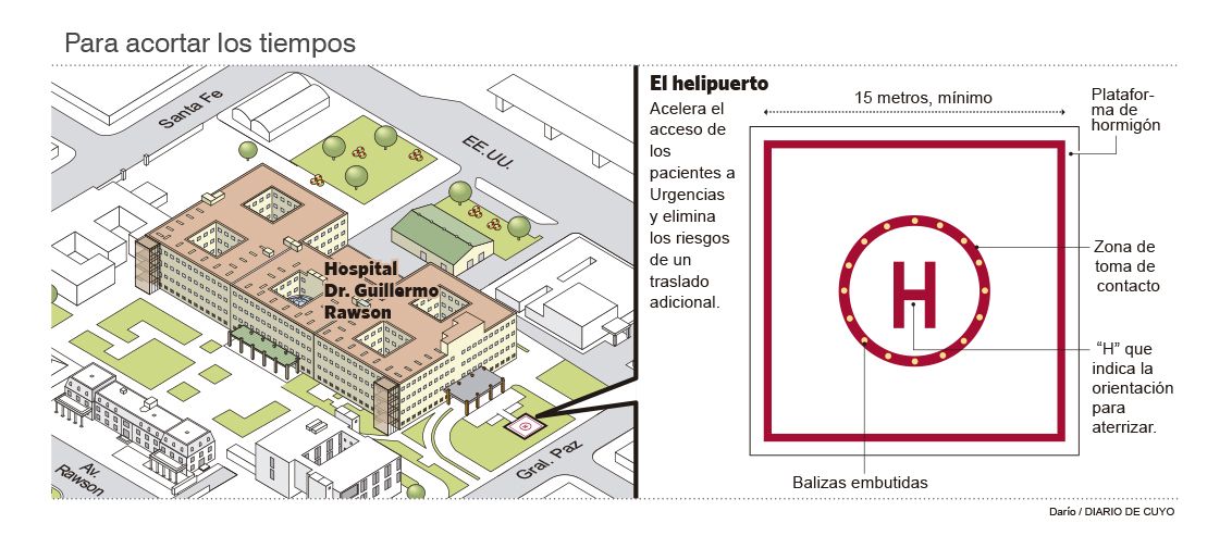 El funcionario agregó que, hasta ahora, el helicóptero que realiza un vuelo sanitario lo más cerca del Hospital donde puede aterrizar es la Terminal de Ómnibus, lo que es contraproducente para el paciente, ya que se lo traslada en camilla por un largo tramo hasta llegar a Urgencias. Dijo que este trayecto, con el nuevo helipuerto, será de menos de 5 metros.