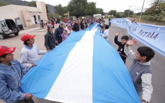 Los astiqueños le aportaron al visitante un escenario patriota donde sacarse fotos, porque a las banderas celestes y blancas que contrastaron con el gris del día, le sumaron un cabildo gigante de tela vegetal hecha por los vecinos del barrio Astica I. En la villa cabecera también podía respirarse atmósfera de 1810, en la plaza pintada a lo argentino y las casas embanderadas hasta los techos, conscientes de que la noche de hoy será doblemente histórica para el departamento.