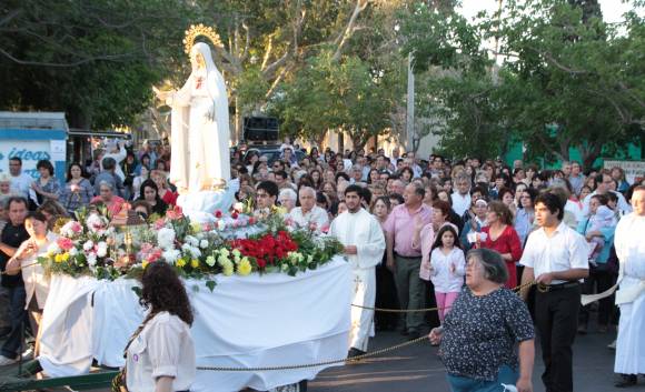 Unos 40 danzantes de dos agrupaciones distintas de Rawson permitieron que la procesión de la Virgen de Fátima de este año fuera aún más colorida que la anterior, que se realizó en 2011.