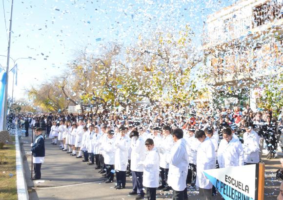 �Ayer, 950 alumnos de 4to Grado de las escuelas públicas y privadas de Santa Lucía, prometieron lealtad a la Bandera. El acto fue organizado por el municipio de ese departamento y contó con la participación de la ministra de Educación, Cristina Díaz, y de los alumnos de las escuelas Normal San Martín y Florentino Ameghino, de Capital, que fueron invitadas a formar parte de los festejos anticipados del Día de la Bandera.