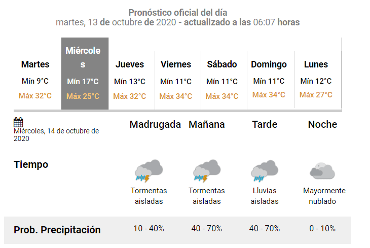 Para mañana se esperan tormentas aisladas durante todo el día, con una máxima de 25 grados.