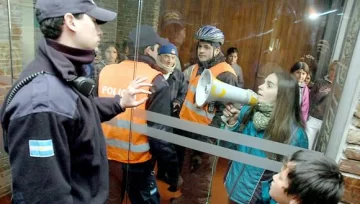 Ayer al mediodía, unos 100 miembros de la agrupación Aníbal Verón hicieron un piquete con pancartas y megáfono por calle Mendoza entre Rivadavia y Avenida Central. El reclamo era por fuentes de trabajo y asistencia sanitaria. La columna decidió entrar a la Catedral, pero fue interceptada por la Policía, que cerró las puertas de vidrio.