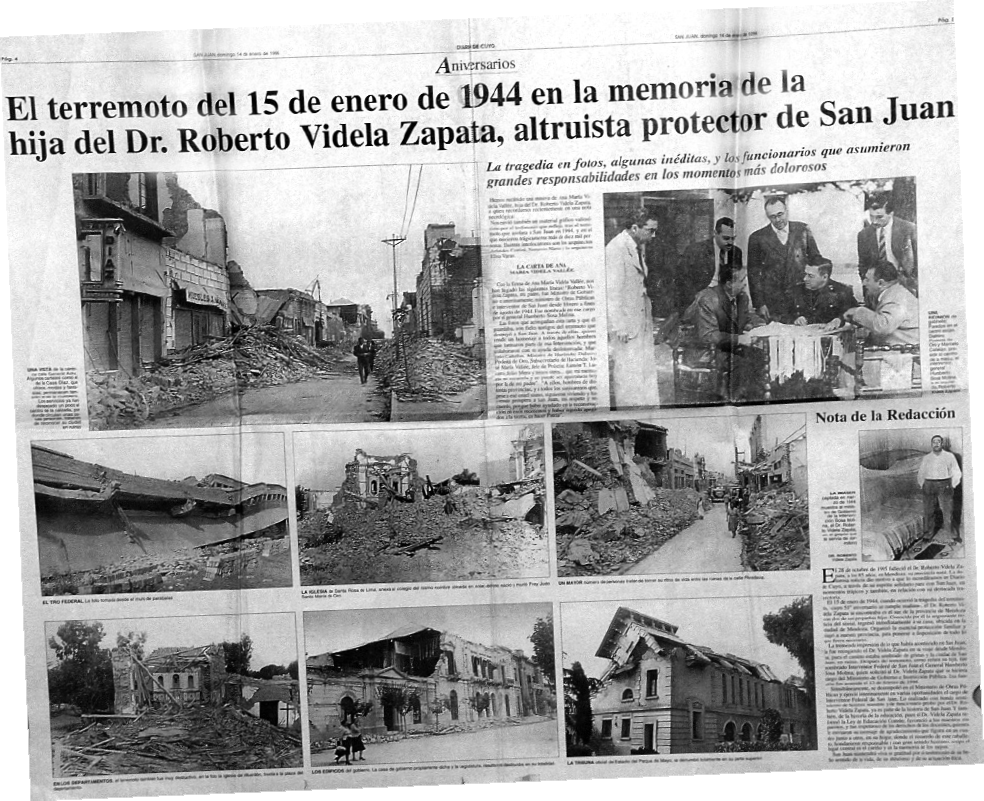 El diario, como testigo escrito a largo de estos años lo reflejó entre sus páginas. Personajes, historias, datos e información, mostraron lo que significa vivir en una zona sísmica. El terremoto del "44 sería el parangón, la ciudad destruida que surgió entre las ruinas y dio lugar al San Juan moderno. Con una intensidad de 7,4 en la escala de Richter, el epicentro fue en la zona de La Laja, donde la falla que se activó produjo a lo largo de diez kilómetros un desplazamiento de casi treinta centímetros que se agrandó con las réplicas posteriores.