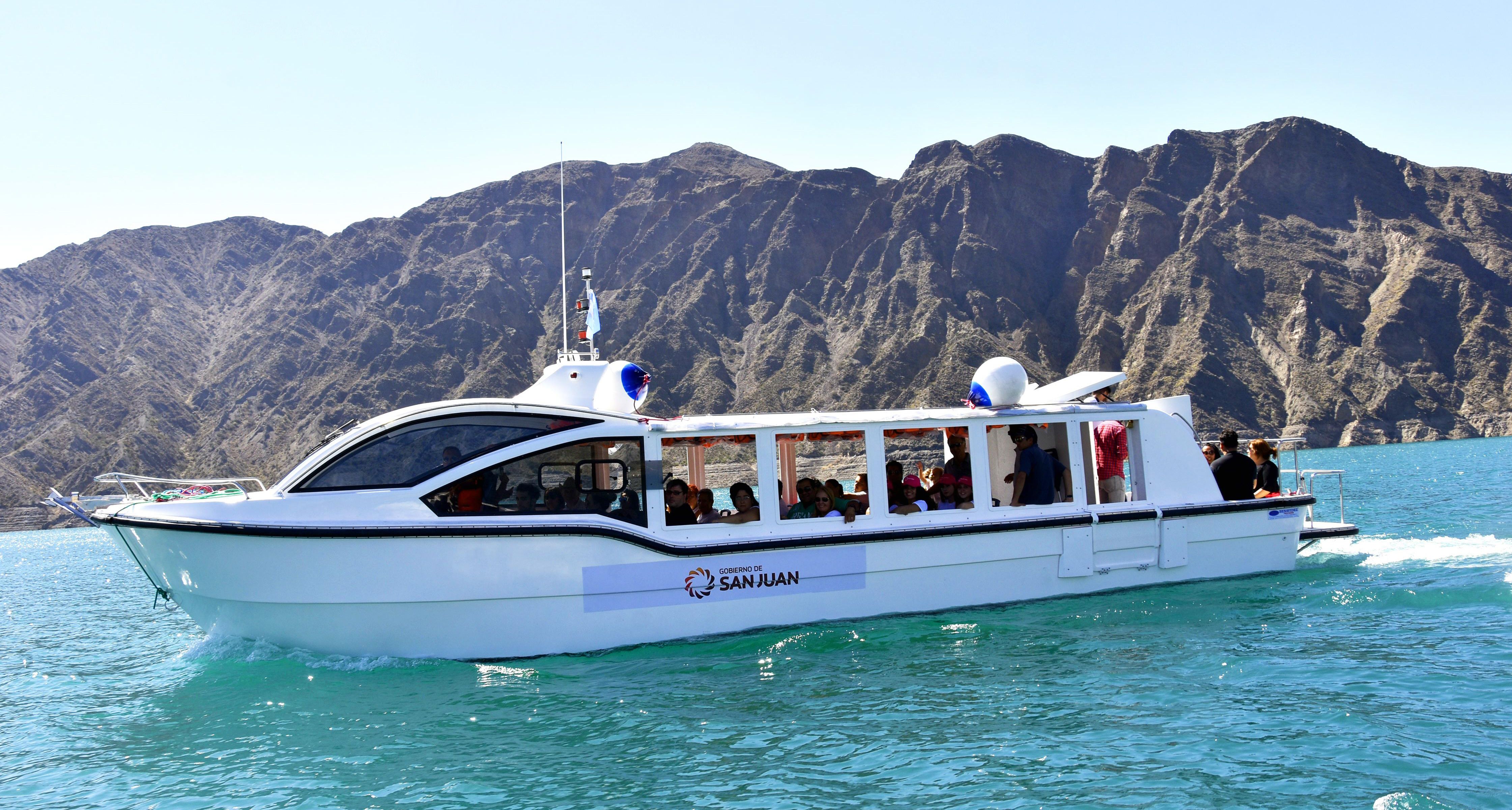 La embarcación llegó anteayer a la provincia y ayer ya comenzó a funcionar. Con capacidad para 30 pasajeros, la embarcación fue concesionada por el Gobierno provincial a la firma “Puerto Aventura”. Como es todo nuevo, el guía Alejandro Ocampo no va contando solamente de las características del embalse desde lo hidroeléctrico y lo turístico y de los cerros que rodean el espejo de agua, con su flora y fauna, haciendo hincapié en el Cerro Negro y en el Cerro de las Sal, sino que va también adelantando futuros proyectos, como excursiones que incluyan desembarcar en puntos especiales para complementar con trekking el viaje. Y para más adelante, practicar snorkel.