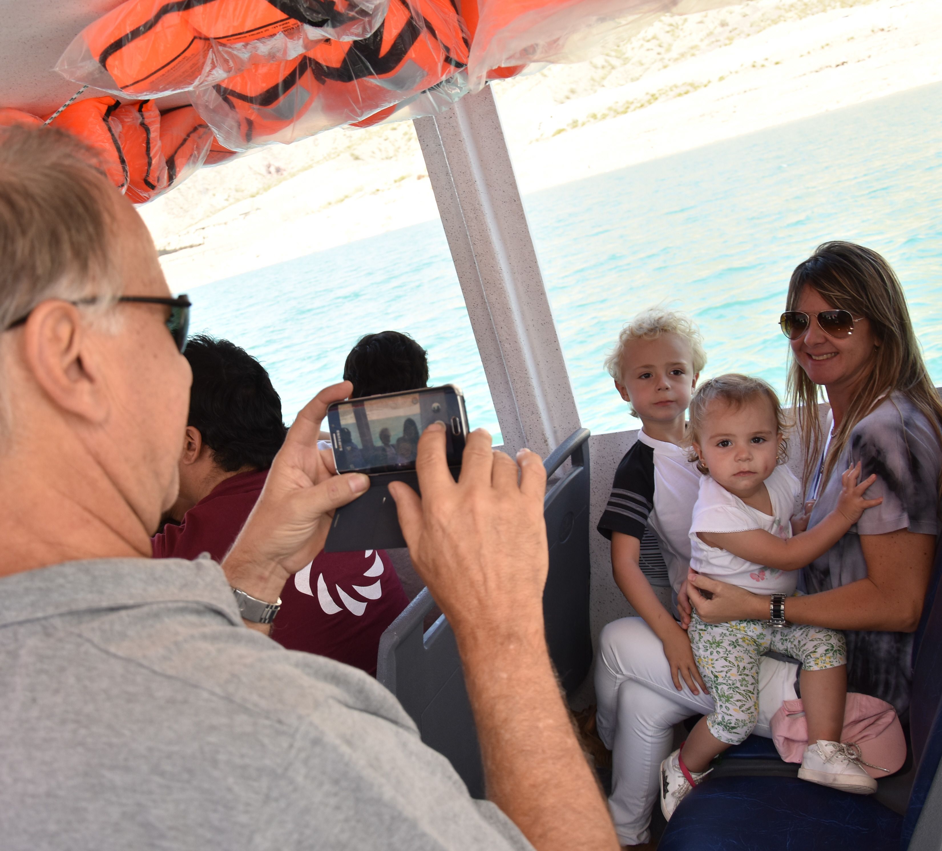 Luego de una hora, la lancha regresa al muelle en el embarcadero. Un momento antes, el ruido del motor desaparece unos segundos y los sonidos del agua y del viento se adueñan de la escena. Es la oportunidad también para que las cámaras trabajen más todavía, buscando el mejor recuerdo de una experiencia novedosa.
