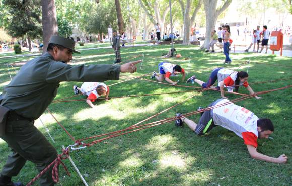 La posta siguiente puso a prueba la agilidad de los atletas y nuevamente se convirtió en un obstáculo difícil de superar. En cuatro patas, de rodillas o panza a tierra tuvieron que atravesar la zona de arrastre por debajo de un entramado de cuerdas ubicado a menos de medio metro del suelo.