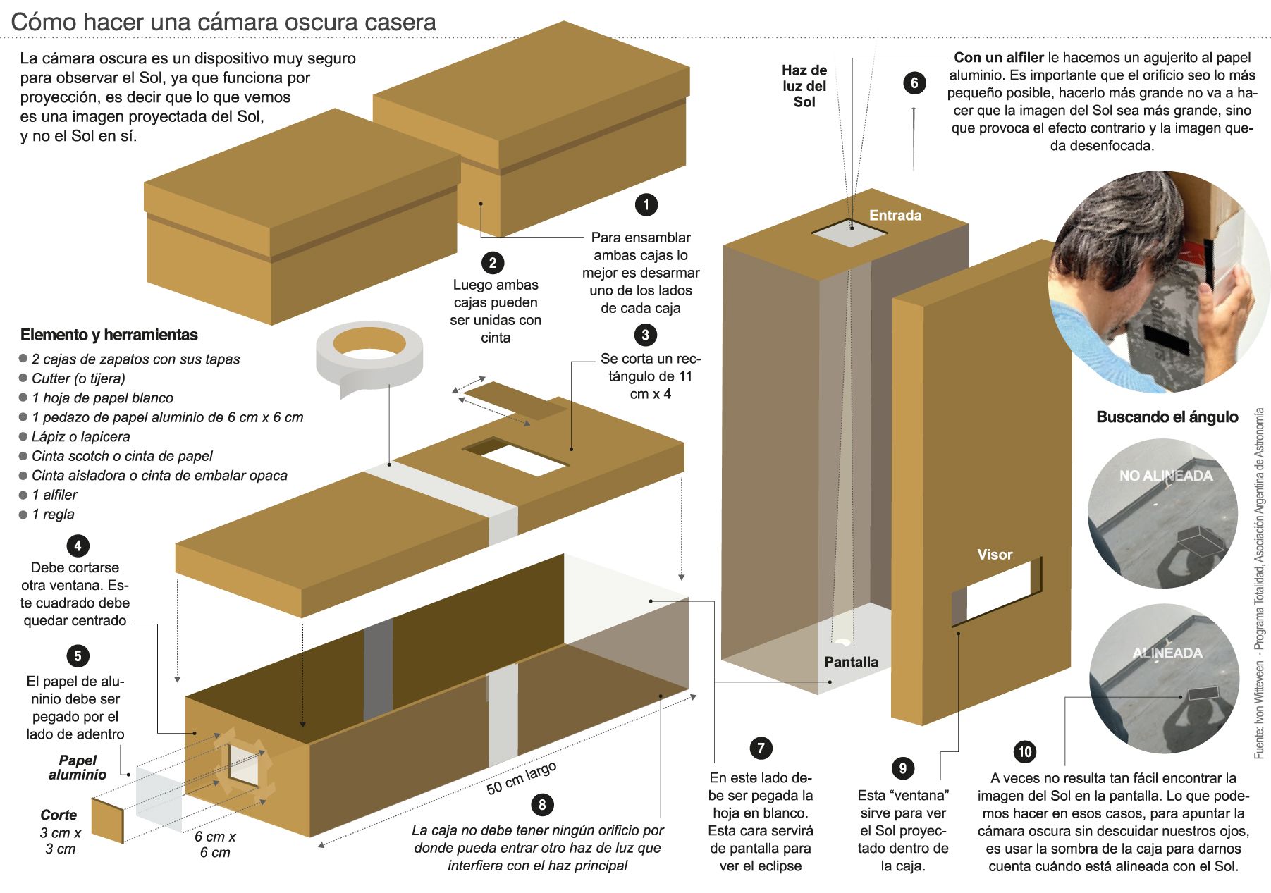 Instructivo: cómo hacer una cámara oscura para observar el eclipse total de Sol con seguridad y sin dañar la vista.