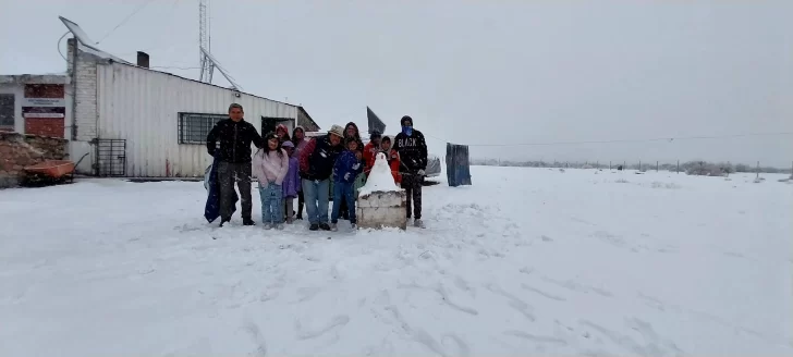 Los chicos de la escuela albergue Miguel Cané se sorprendieron con unos 40 centímetros de nieve. Aunque las nevadas son habituales, los alumnos no recuerdan tantas horas de nevadas en esta época del año.