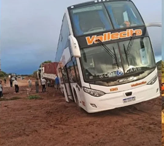 Por la inestabilidad del terreno y el peso del rodado, el colectivo se comenzó a hundir, provocando momentos de miedo entre los pasajeros que tuvieron que descender de la unidad en medio de la ruta y esperar por ayuda.