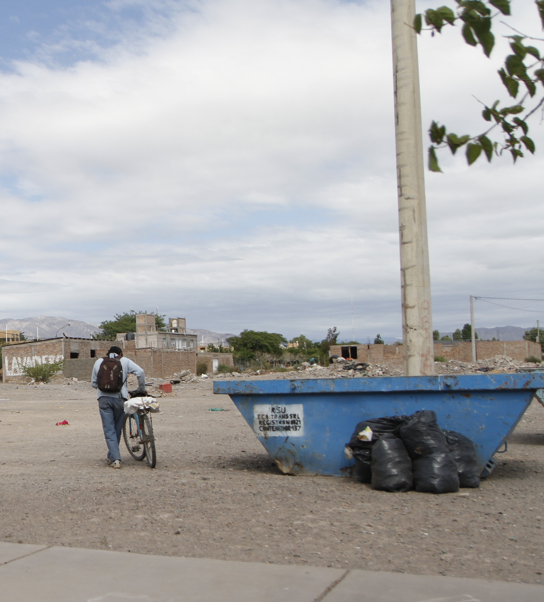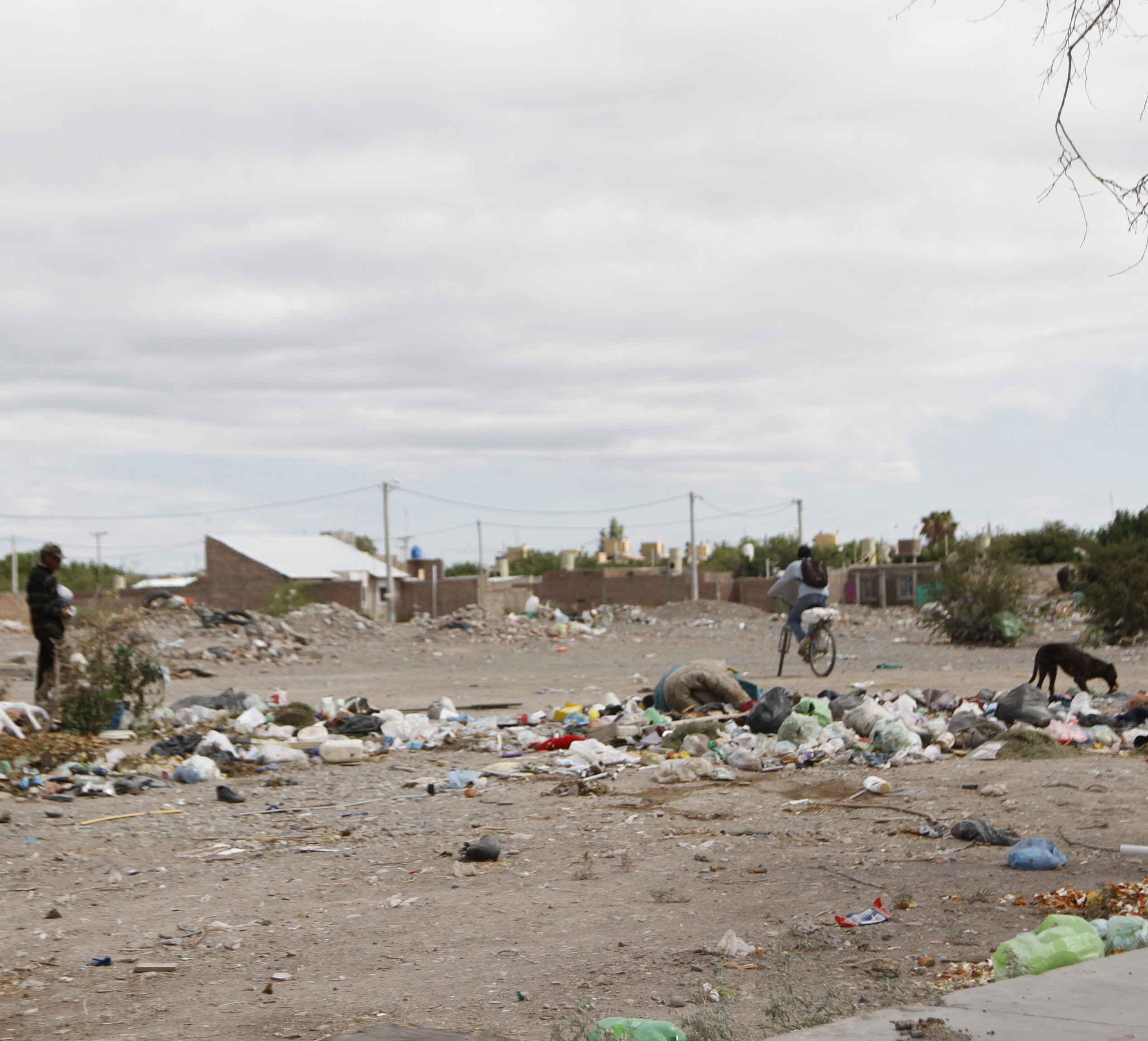 Sin consciencia. A pesar que en el descampado del barrio Hualilán II, en Rawson, hay contenedores, la gente no los usa.