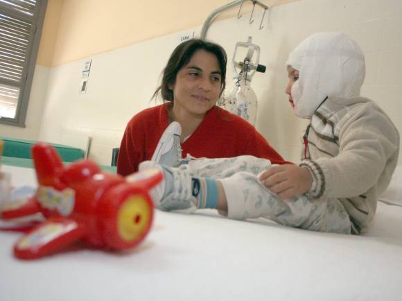 El vendaje de la cabeza sólo deja ver el rostro de Tomas. Tiene un año y por un accidente casero (se le derramó agua hirviendo) está internado en el Servicio del Quemado del Hospital Marcial Quiroga. Éste es uno de los tantos casos que atienden por año en esa área, donde las internaciones de niños son cada vez más comunes. En 2011 el 65% de los internados fueron menores de 10 años. Esta situación preocupa a los especialistas ya que las causas más frecuentes de las quemaduras son accidentes caseros. Éste es el único servicio que se encarga de personas quemadas en la provincia (ver aparte).
