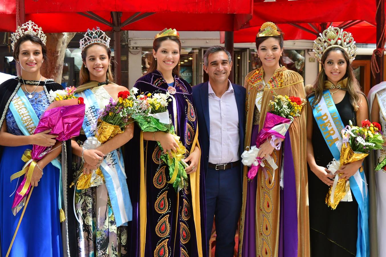En ese contexto, este sábado al mediodía las jóvenes fueron recibidas en la peatonal por la Cámara de Comercio de San Juan y la Municipalidad de la Capital, donde se realizó una recepción para homenajearlas junto las anfitrionas, la Reina y Virreina del Sol 2016, Gabriela Puerta y Milagros Mini.