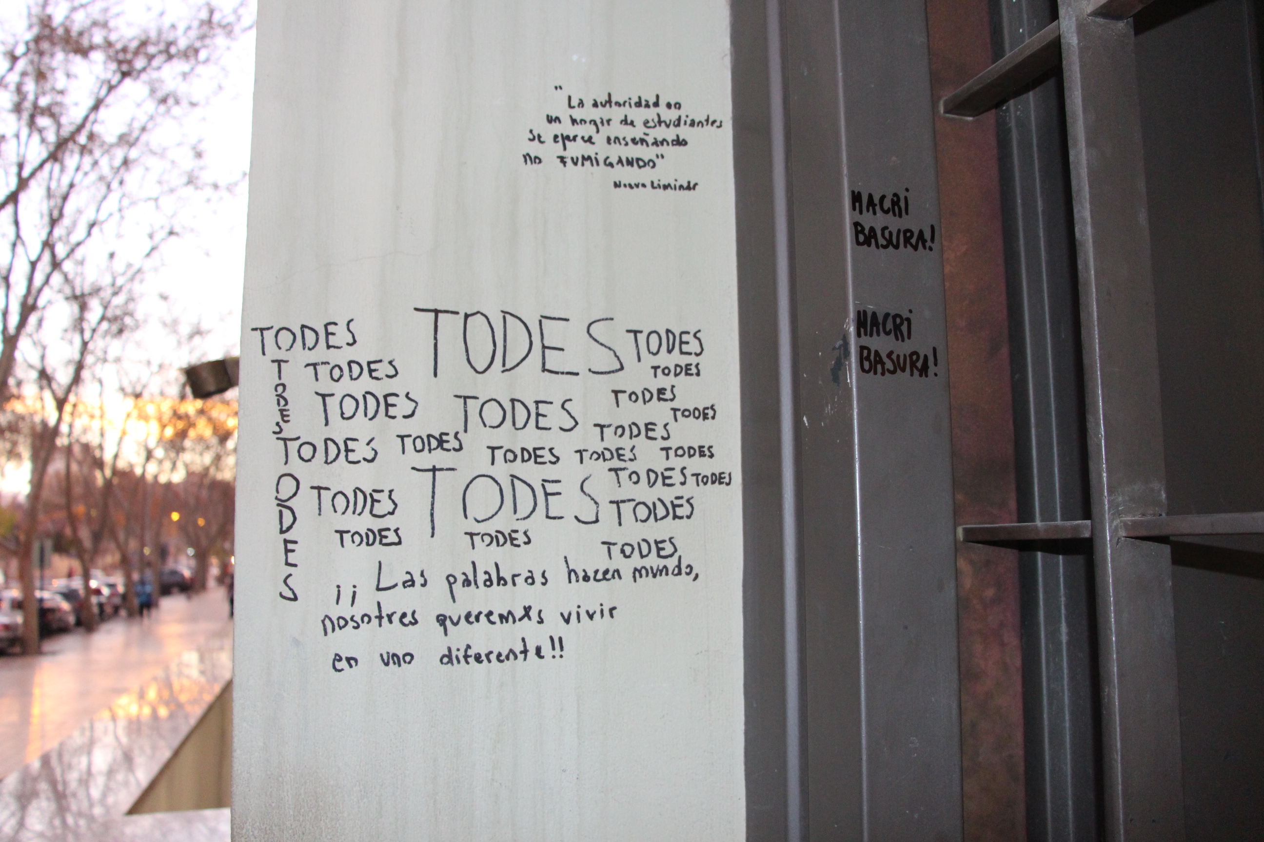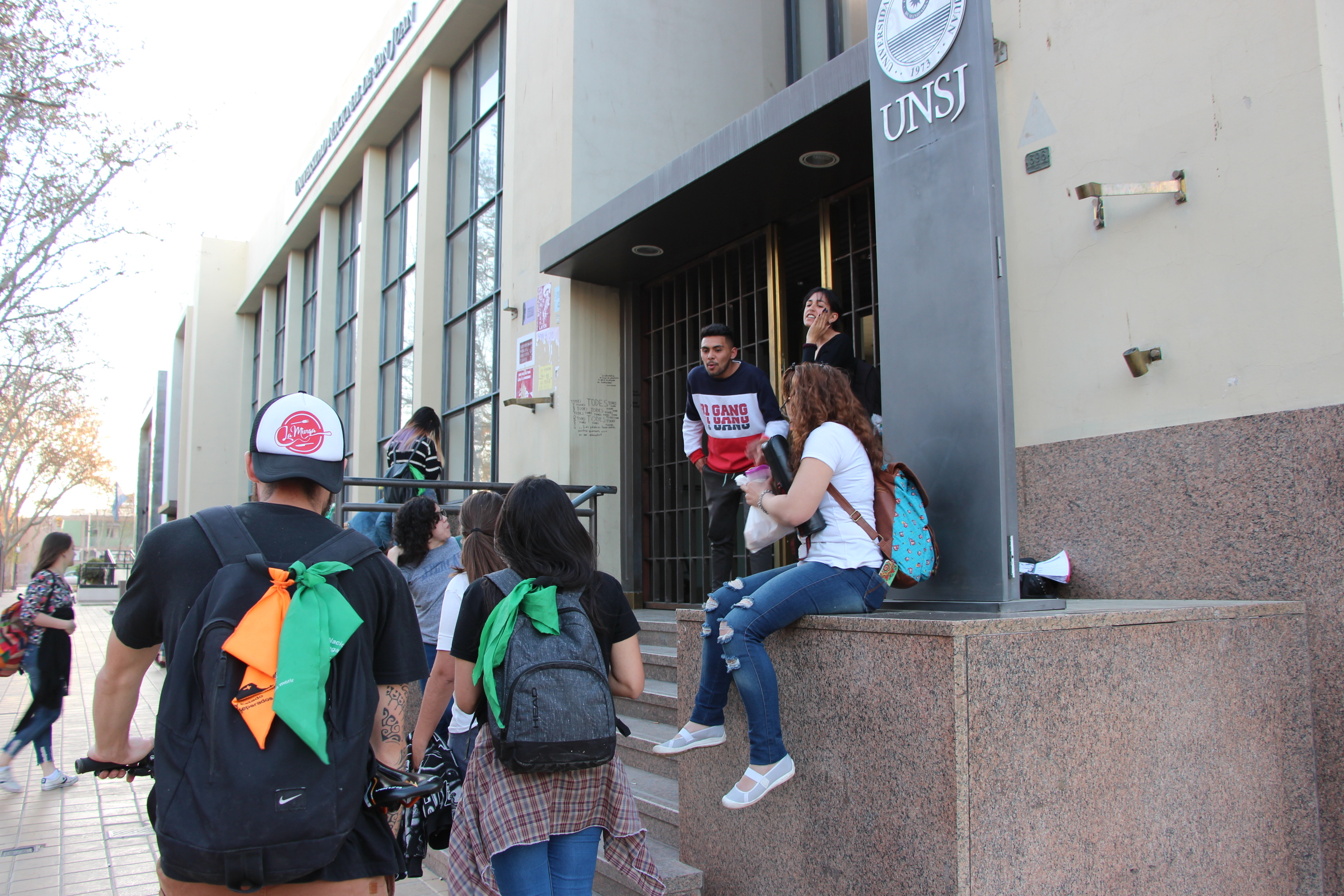 Por su parte, algunas personas que pasaban por el lugar les manifestaban que no es una buena decisión "tomar el Rectorado" y en su mayoría, aseguraban ser docentes de la UNSJ.
