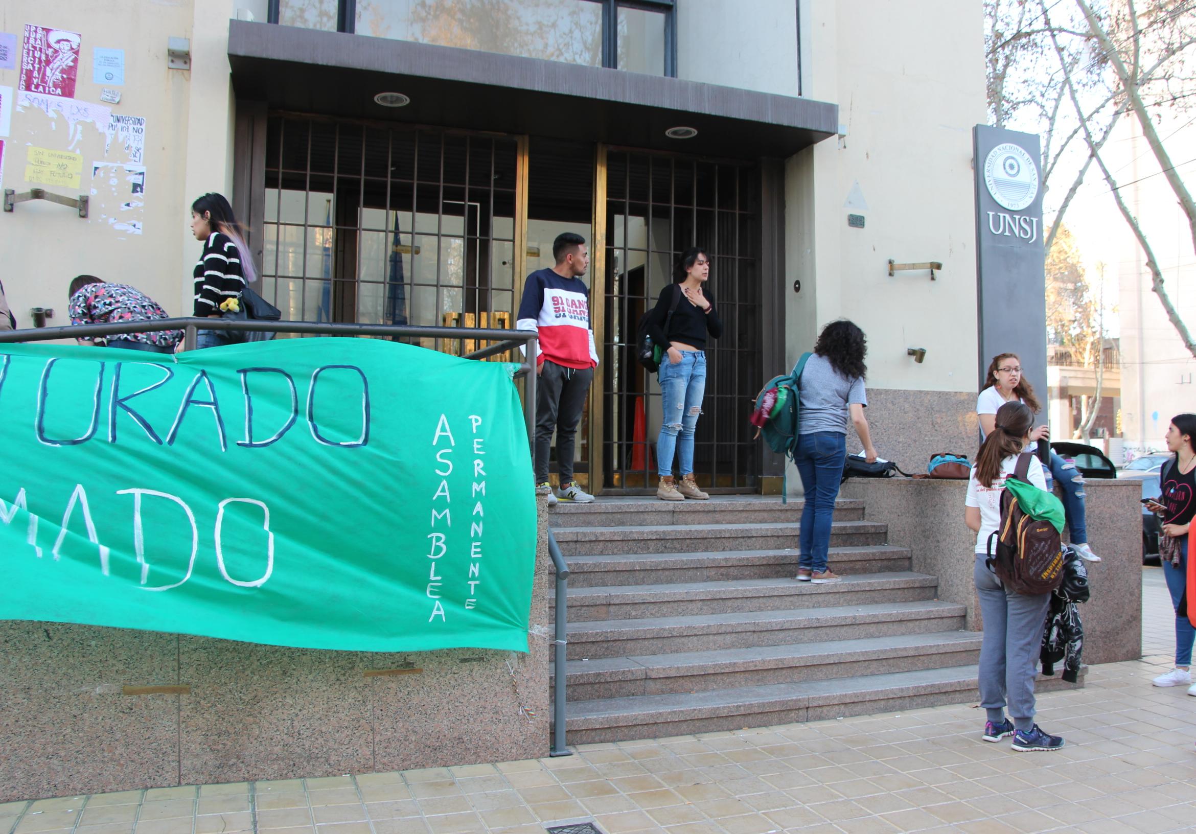 Los estudiantes aceptaron dos peticiones de las autoridades de la UNSJ, que se puedan liquidar sueldos y que la seguridad privada de la institución permaneciera cumpliendo sus labores diarios.