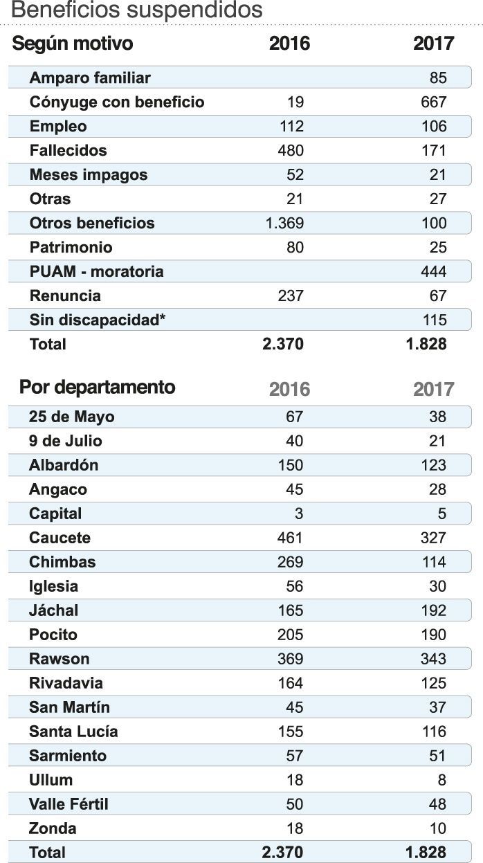 La cantidad de sanjuaninos que se vieron afectados por la suspensión del beneficio no contributivo.