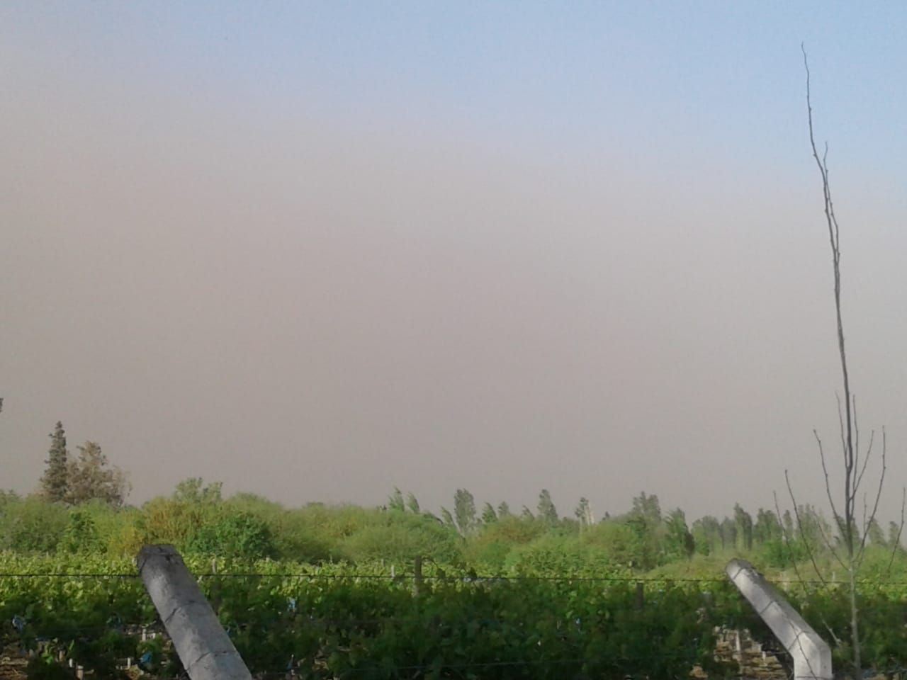 El viento también complicó el tránsito. En distintas zonas hubo caídas de ramas y la visibilidad se vio reducida considerablemente por la tierra.