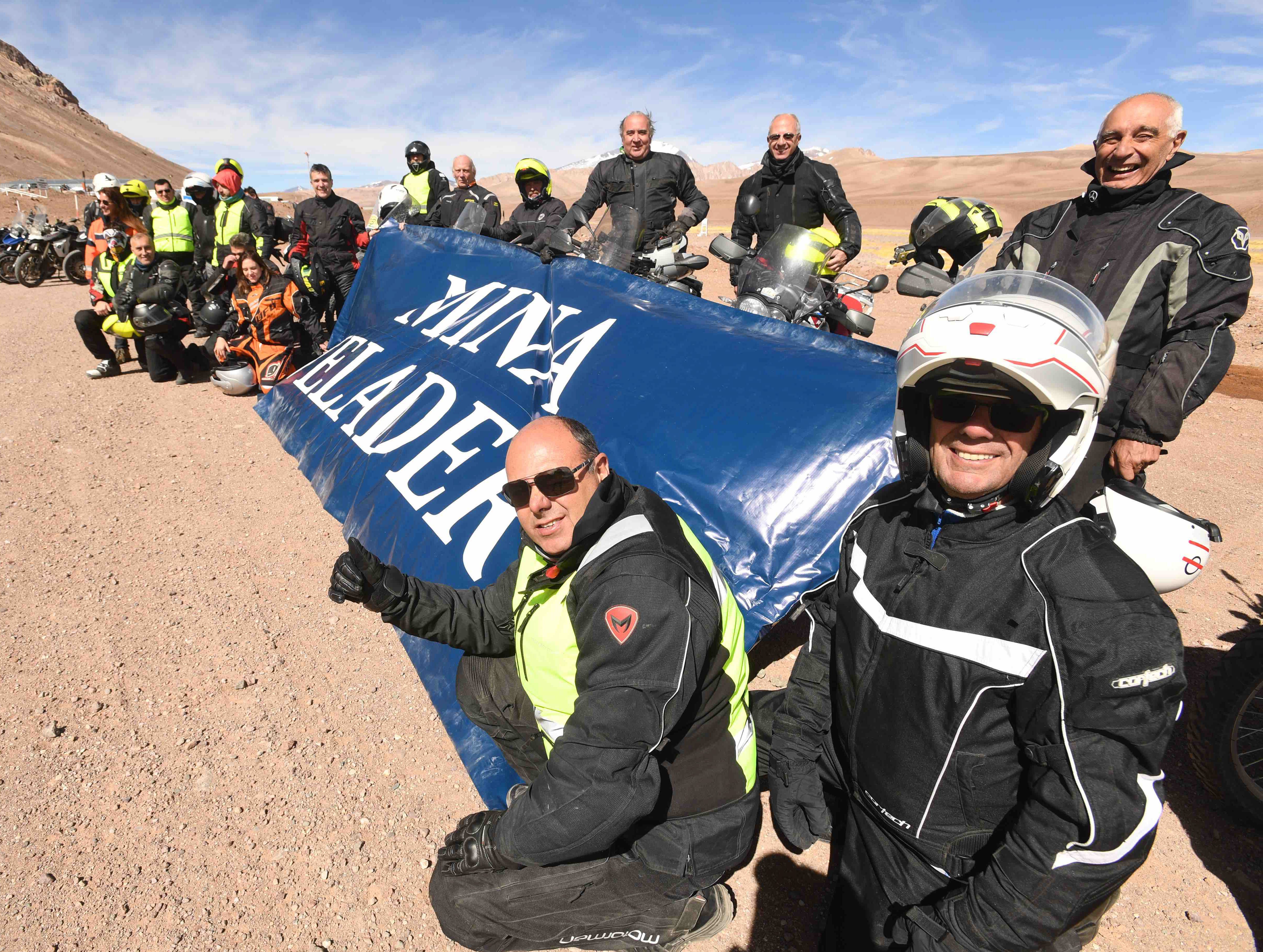 Privilegiados. Fueron 26 los hombres que participaron de la primera travesía en moto a la mina Veladero. La misma se realizó ayer, organizada por los directivos de la empresa.