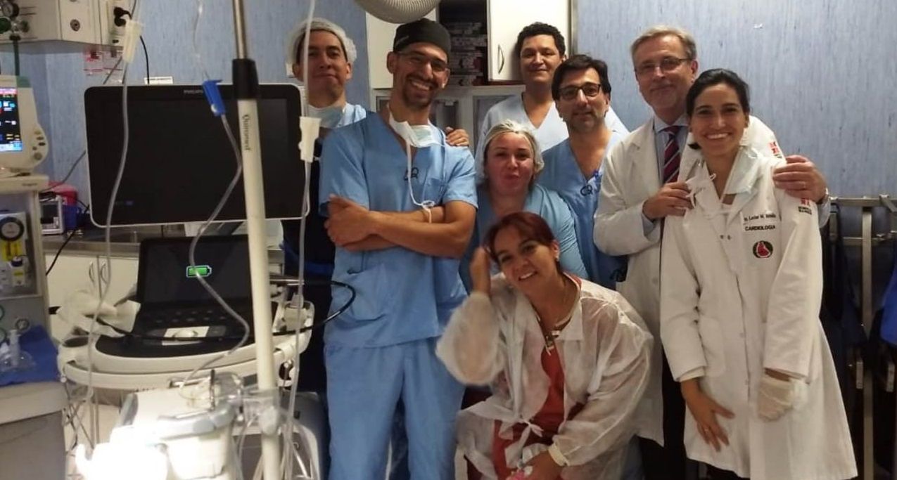 Tras un manejo interdisciplinario, el sector de Hemodinamia del Servicio de Cardiología decidió el cierre de ese conducto y tras convocar al personal del servicio de Cardiología, de Anestesia, de Enfermería y del servicio de Hemodinamia, se llevó la intervención exitosa y sin complicaciones, colocando por primera vez un dispositivo de oclusión a nivel del tabique interauricular, logrando el cierre permanente del Foramen Oval Permeable.