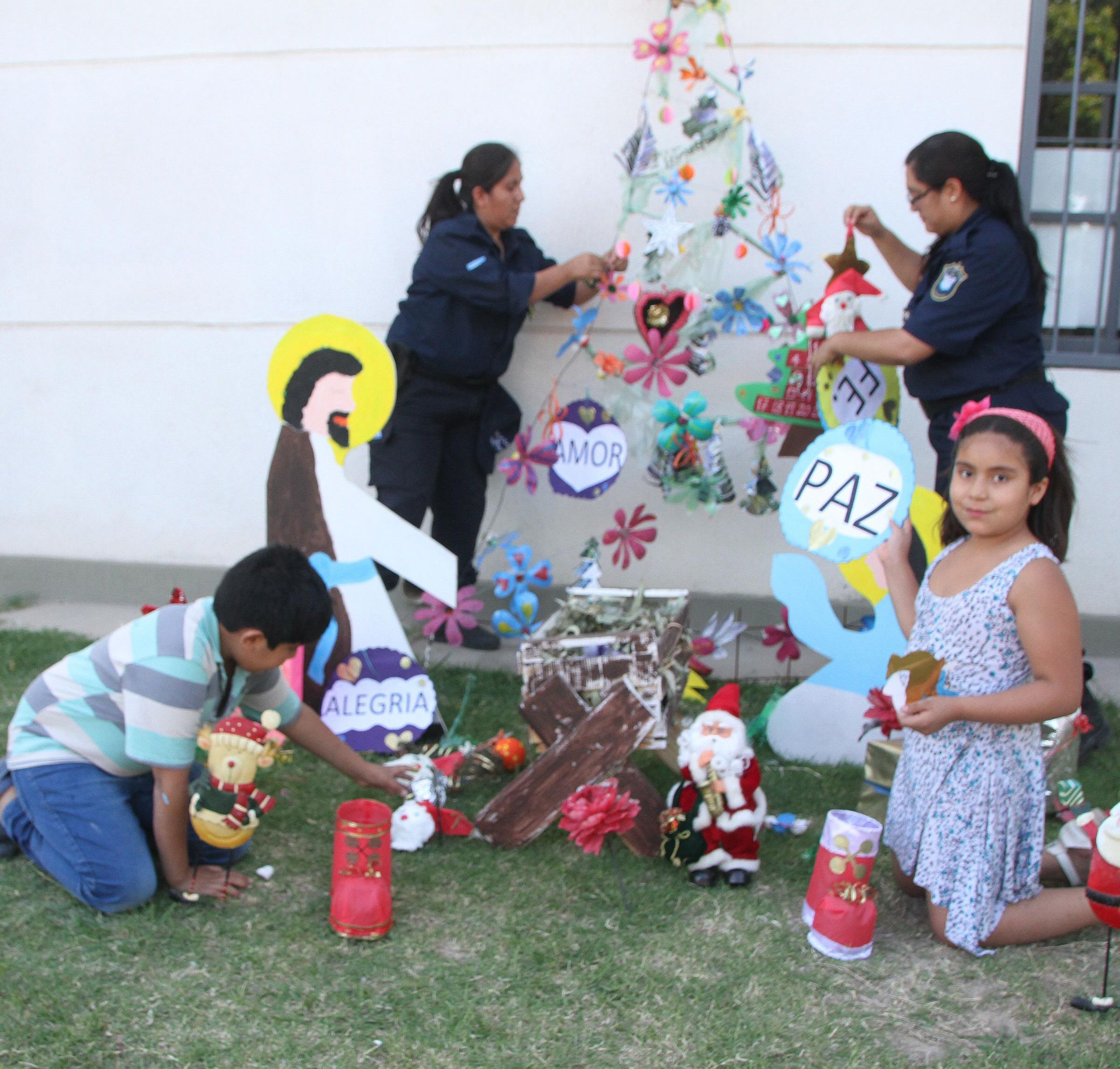 Los niños también están estrenando casa con su mamá. Esto porque acaban de entregarle una vivienda en el barrio Conjunto 6, en La Bebida. Es por eso que también confeccionaron adornos reciclados para este lugar. Todo lo hicieron rápido y la iniciativa surgió de ellos mismos. Durante el tiempo que trabajaron, inundaron el comedor con papelitos, plasticola, cartulinas y botellas. No faltó ingenio ni entusiasmo. Hasta buscaron algunos muñecos viejos para realizar la representación del Nacimiento de Jesús. Luego de que todo quedó listo, el 8 de diciembre pasado, tal como lo marca la tradición, la mamá y los chicos tomaron un remís con el arbolito y llegaron a la comisaría. Allí, en uno de los patios, se dispusieron a colocar la ornamentación que ahora hace del lugar un sitio llamativo.