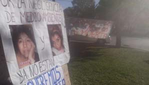 San Juan, 8 de mayo.- Familiares de Mercedes Montiveros (48) y Mayra Illanes (22), madre e hija fallecidas en noviembre del año pasado por tomar contacto con un producto peligroso en una escombrera de Chimbas, se concentraron esta mañana frente al Centro Cívico.