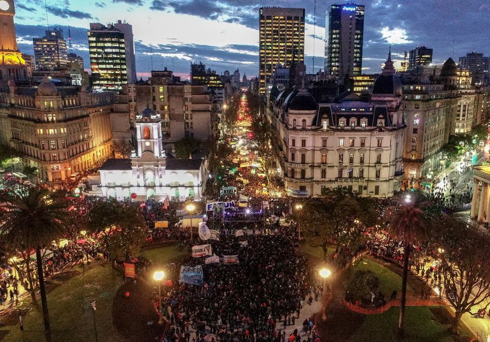 La más numerosa sucedió en Buenos Aires, con unos 100.000 manifestantes aproximadamente, desafiando incluso una persistente lluvia.
