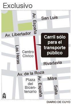 Lo construyeron hace 4 años para contrarrestar el caos de tránsito que se generó en la zona cuando cambió el sentido de circulación de calle Las Heras. Pero no logró su cometido. Se trata del carril de uso exclusivo para vehículos de transporte de pasajeros que comprende el tramo de Avenida España desde Libertador hasta Ignacio de la Roza, en Capital, y que según admitieron desde el Municipio, no se usa. Los colectivos no pueden transitar por este sector debido a los autos estacionados ilegalmente sobre el mismo. Hace dos días el gobierno de la provincia y el municipio de Capital firmaron un convenio para trabajar conjuntamente en medidas para descongestionar el tránsito de la ciudad como, por ejemplo, la construcción de más carriles de uso exclusivo para colectivos.