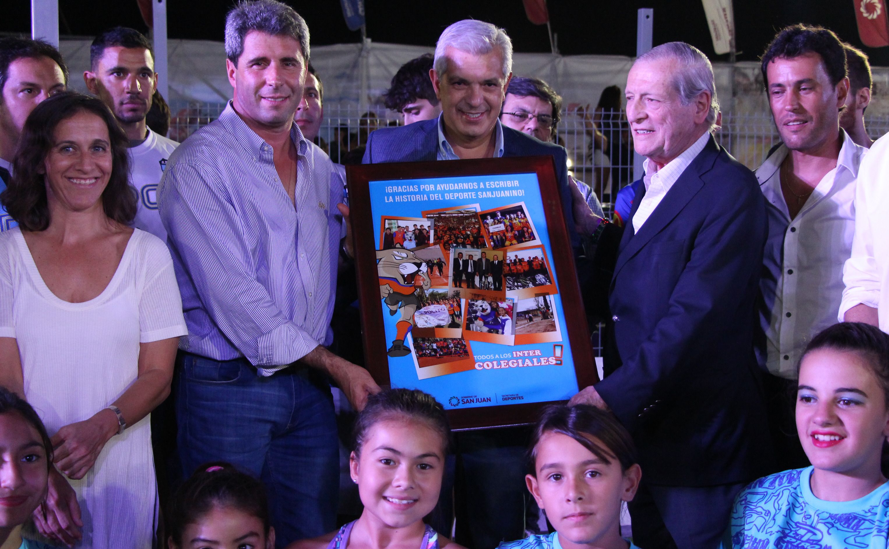 El Gobierno provincial, a través de la Secretaría de Deportes, le otorgó ayer un reconocimiento especial a DIARIO DE CUYO por su aporte permanente e incondicional a los Juegos Intercolegiales en San Juan. Dicho evento movilizó el año pasado a más de 25.000 chicos que no sólo participaron deportivamente sino que además convivieron en el aprendizaje de valores humanos, fundamentales en su desarrollo. A la distinción, recibida por el director de este medio, Dr. Francisco B. Montes, la otorgaron el gobernador Sergio Uñac y el secretario de Deportes Jorge Chica, acompañados por Julián Domínguez, exdiputado nacional por Buenos Aires e invitado especial a la FNS.