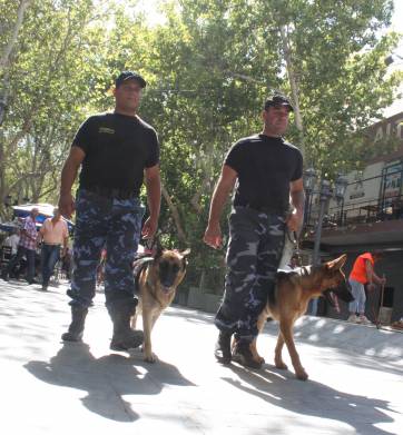 Sentados, pero sin perder su prestancia y muy atentos a todo lo que sucede a su alrededor. Así es como cumplen las horas de operativo los perros que son parte de la División Canes de la Policía de San Juan. Es que desde hace poco más de un mes, estos perros salieron a la calle para colaborar con los efectivos en la prevención de robos en la vía pública. Realizan operativos de control en la Peatonal, el Parque y hasta el Jardín de los Poetas. Para ello tuvieron que duplicar la cantidad de animales que tiene la Fuerza.