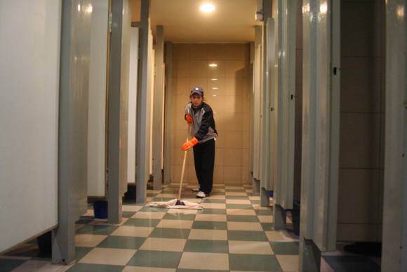 En el flamante edificio, ubicado frente a la plaza España, trabajan unos 50 empleados para la empresa privada que se encarga de la higiene del lugar. Por cada piso, una o dos personas limpian exclusivamente los baños. Por esta razón, cada media hora cada uno de los sanitarios (son unos 12 por piso) es limpiado. "Sólo usamos cloro y distintos desinfectantes y la ronda permanente asegura la higiene en esos lugares", aseguró Adriana, la encargada del personal de limpieza, que no dio su apellido alegando vergüenza. El trabajo es el mismo al de antes de declarada la emergencia sanitaria, a tal punto que los ordenanzas no usan barbijos para trabajar en los baños.