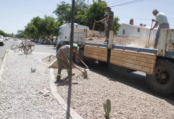 "Pusimos algunas especies que son resistentes a la sequía y no necesitan mucha cantidad de agua. También colocamos cactus", agregó Ramos y comentó que no descartan implementar este tipo de paisajes en otros espacios verdes, para economizar el uso de agua. Es que en este bulevar pasarán de usar 80.000 litros mensuales, a 3.000 litros en el mismo tiempo. Y sobre el diseño, dijo que además de llevar piedras de diferentes colores, repararon los cordones, colocaron esferas metálicas y hasta pusieron algunas macetas con otros ejemplares de bajo mantenimiento. "La idea es empezar a diseñar nuestros espacios y poder tener más en cuenta los condicionantes del agua. Caso contrario, se genera problemas", agregó Ramos y dijo que calculan que mañana la obra estará finalizada.