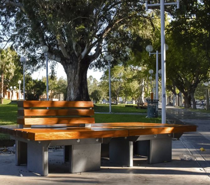 Dirección Provincial de Espacios Verdes está realizando la remodelación del Ferro Urbanístico y la Plaza España con nuevos mobiliarios de primera calidad. Se trata de diferentes modelos de bancos de madera con hierro fundido y accesorios metálicos, diferentes estilos de macetas, bebederos y bolardos con luminaria LED.